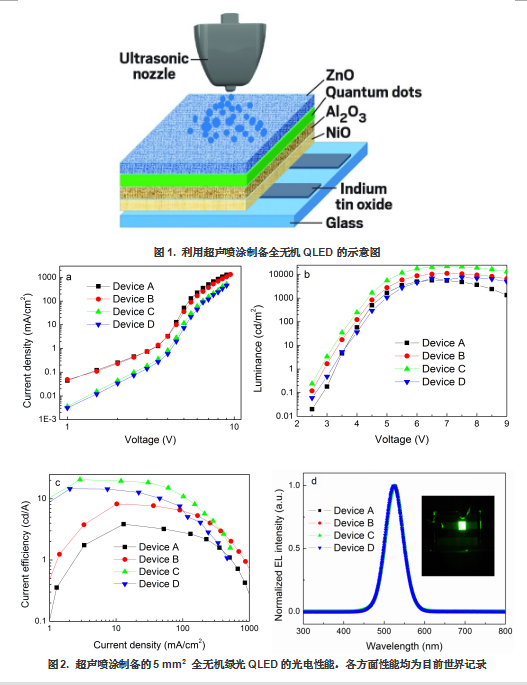近日,我校漫蛙 张汉壮、纪文宇教授课题组与电子学院谢文法教授课题组合作,利用超声雾化喷涂技术,制备了迄今为止性能最佳的全无机量子点电致发光器件(QLEDs)(ACS Photonics 2017, DOI:10.1021/acsphotonics.7b00216)。