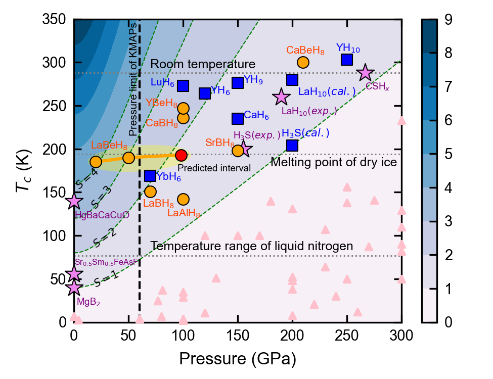 “化学预压缩”理论无疑是非常成功的,它使得本应在500万大气压以上稳定的氢金属相,降低到了150万大气压左右。但是这么高的压力只能在金刚石对顶砧中合成微米量级的样品,如果把氢化物的合成压强降低到几十万大气压,那么就有希望在大腔体压机中合成毫米级样品,因此在较温和的压力条件下获得富氢高温超导相是目前该领域的一个非常关键科学问题。