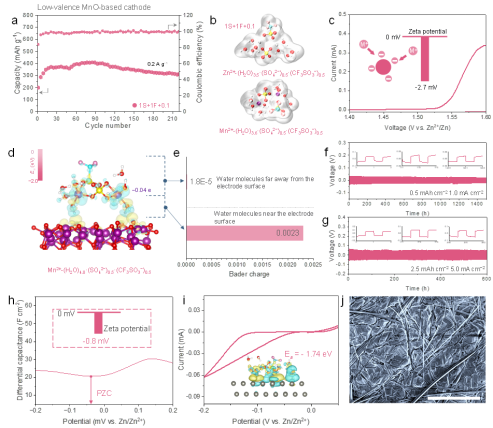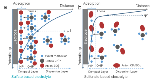 ✔3. 最后电解质的合理重新设计:在提出的模型的指导下,作为验证,我们进一步提出了一种硫酸盐/磺酸盐混合电解质,其中优化的EEI特性吸附行为使构建的锌锰电池的容量和循环稳定性方面具有协同改善。