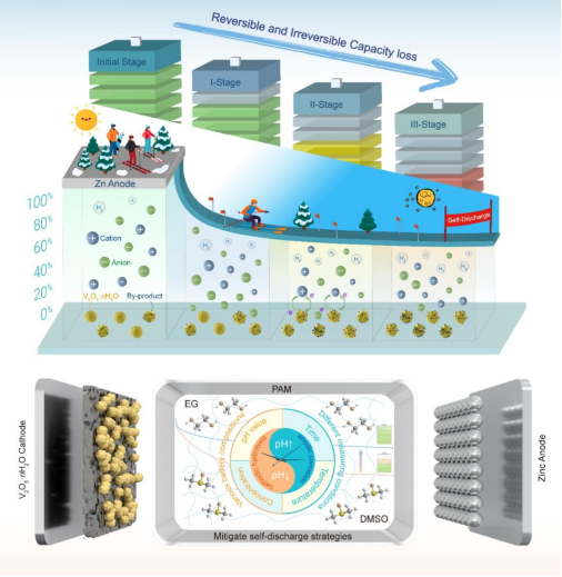 新型电池物理与技术教育部重点实验室魏英进教授团队在水系锌电池自放电机理研究方面取得新进展。研究成果以“Decoding the Mechanism of Self-discharge and Optimal Electrolyte Reconfiguration for Advanced Vanadium-based Aqueous Zinc Batteries”为题,发表在《Energy & Environmental Science》上。