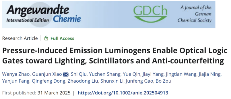 高压与超硬材料全国重点实验室邹勃教授团队肖冠军教授等人,借助压强工程点亮了无辐射锡基金属卤化物,并成功地将高品质发光高压相稳定保存在常压环境,这一常压截获的非晶相发光材料同时展现出激发依赖的动态多色发光调控。高压诱导的不可逆非晶化相变,使我们得以借助大腔体压机实现宏量制备,压强卸载后获得的大质量锡基金属卤化物非晶相发光材料,在固态照明、X射线探测、光学逻辑门与防伪等领域呈现出巨大的应用潜力,推进了压强诱导发光从基础研究迈向实际应用。相关成果以“Pressure-Induced Emission Luminogens Enable Optical Logic Gates toward Lighting, Scintillators and Anti-counterfeiting”为题发表在国际权威期刊《Angewandte Chemie International Edition》上。