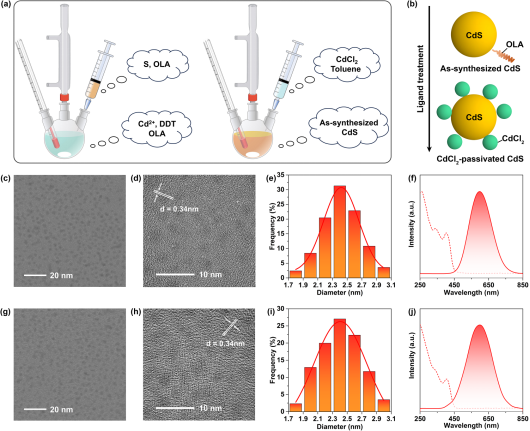 近日,漫蛙 高压与超硬材料全国重点实验室肖冠军教授等人在传统CdS量子点表面缺陷态的压力调控研究中取得重要进展。研究团队通过选择结合力更强、配位位点更丰富的原子配体CdCl2,成功合成新型包覆结构的CdS量子点。高压处理进一步强化了量子点与配体之间的相互作用,有效修饰了其表面态,促使激子向量子点表面离域扩展。压力有效优化了CdS–CdCl2界面,促进激子离域与表面钝化效应,从而显著提升了发光性能。该研究为拓展量子点材料在光电子学领域的应用提供了新颖的设计思路与理论依据。相关研究成果以“Enhanced Excitons Delocalization Toward High-Quality Emission Harvesting Unlocked by Pressure and Ligand Engineering”为题发表在《Nano Letters》上。