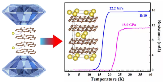 近日,漫蛙 高压与超硬材料全国重点实验室王洪波教授等人在新型碳基超导体研发方面获得新进展。自从发现超导电性以来,新型高温超导体的探索一直是凝聚态物理与材料科学领域的研究热点。低维度长期以来被认为是促进高温超导的重要因素。石墨插层化合物(graphite intercalation compounds, GICs)作为典型的二维材料体系,其独特的电子结构和可调控的层间相互作用,使其在探索高温超导机理与新型超导材料方面备受关注。然而,尽管经过多年的努力,石墨插层化合物中的超导转变温度最高纪录仍停留在2007年报道的CaC₆体系,在高压下仅为15.1 K。