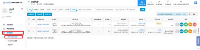 1.使用指导老师账号登陆实验室综合管理平台,并进入仪器共享管理界面。