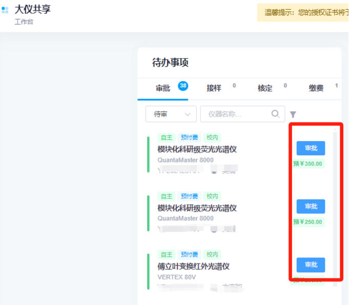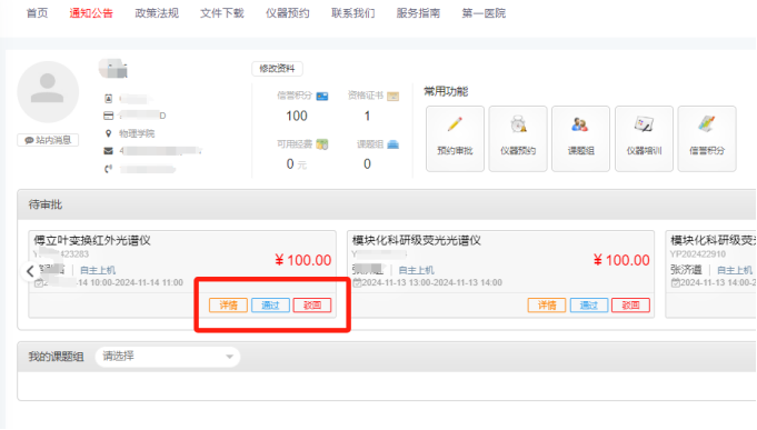 可看到相应的预约情况,经过管理员审批同意后,则顺利完成仪器预约。