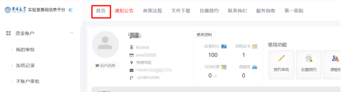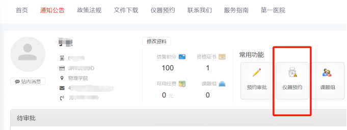 实验室综合管理平台,登陆完成后进入仪器预约项目。