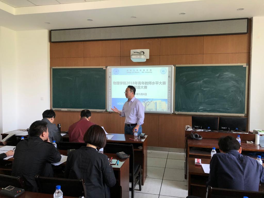 于2018年5月6日在物理楼369教室举办了青年教师教学水平暨双语教学大赛。