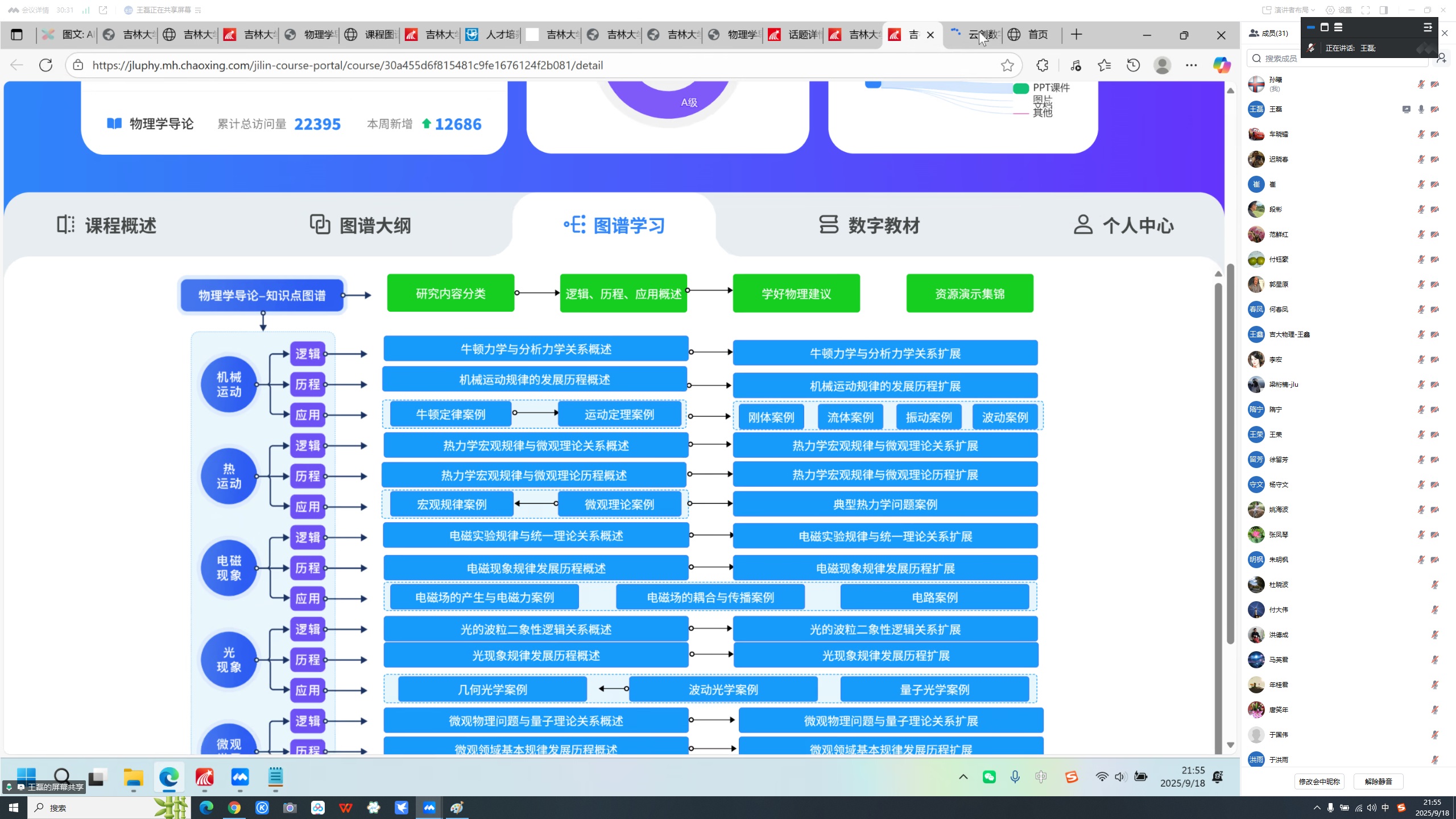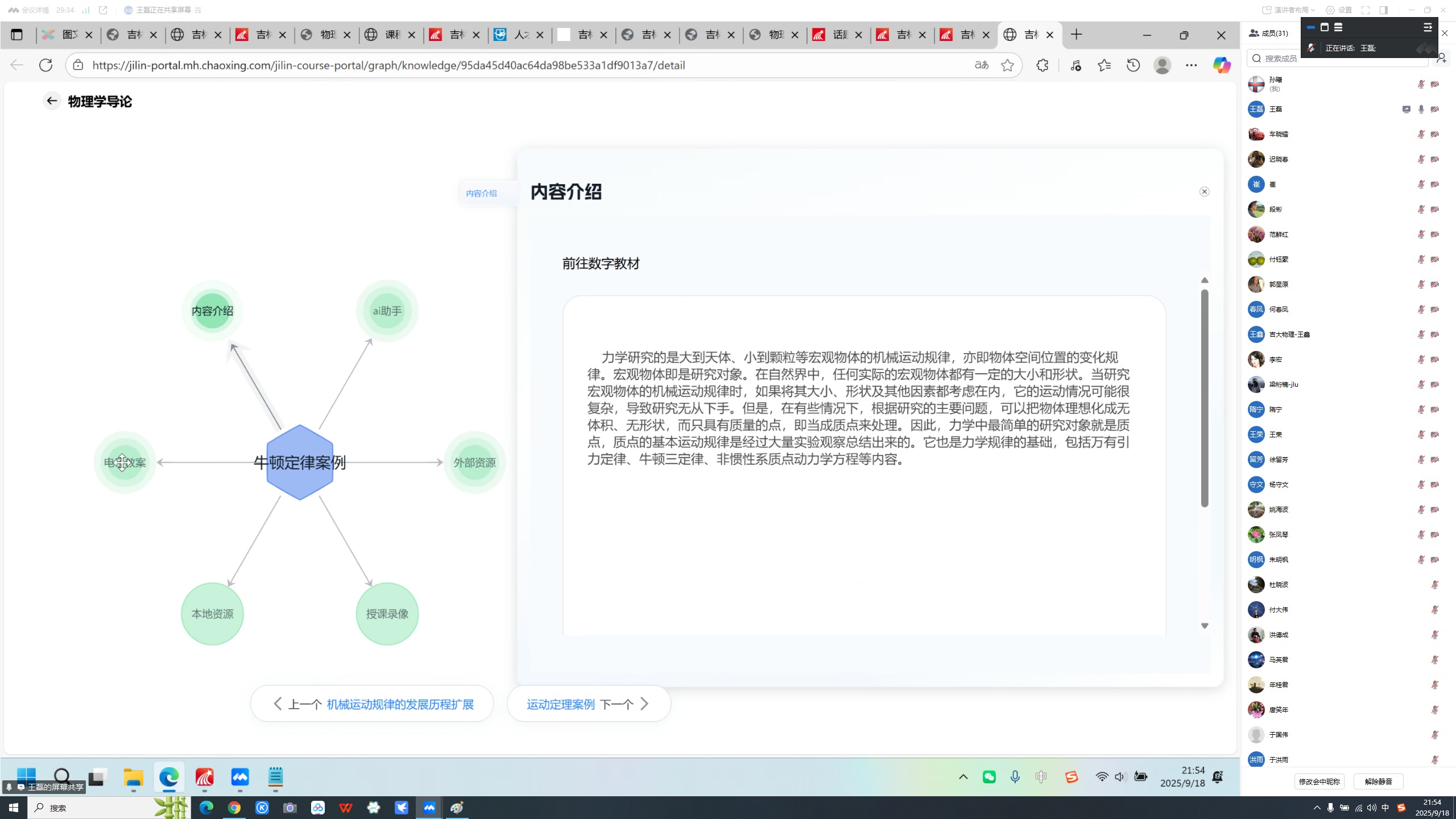 随后,王鑫简要介绍了学院AI赋能课程建设的基本情况,提出物理主干课程知识点和图谱建设有利于梳理物理主干课程体系,有利于学生建立物理思维;教学模式的转变也有利于对学生进行学情分析,实时获得学生的反馈,了解教学效果;AI技术的使用也强化了对课程内容的打磨,为申请省级乃至国家级一流本科课程奠定良好的基础。