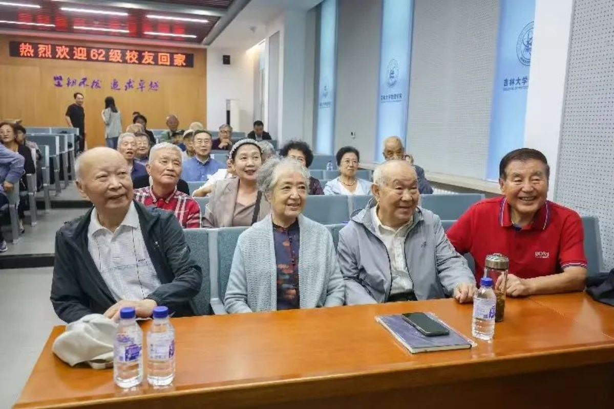 物理系,结为同窗。光阴似箭,岁月如梭,转眼间已过60年。历时六十个春华秋实、夏暑冬寒的洗礼,当年青春焕发的靓女俊男,如今已是白发婆裟的老太老翁,即便已是耄耋之年,但在吉大物理70年、初次相逢一甲子的重要时间节点,他们依然克服重重困难,返回母校团聚。