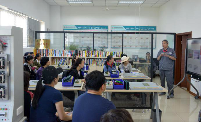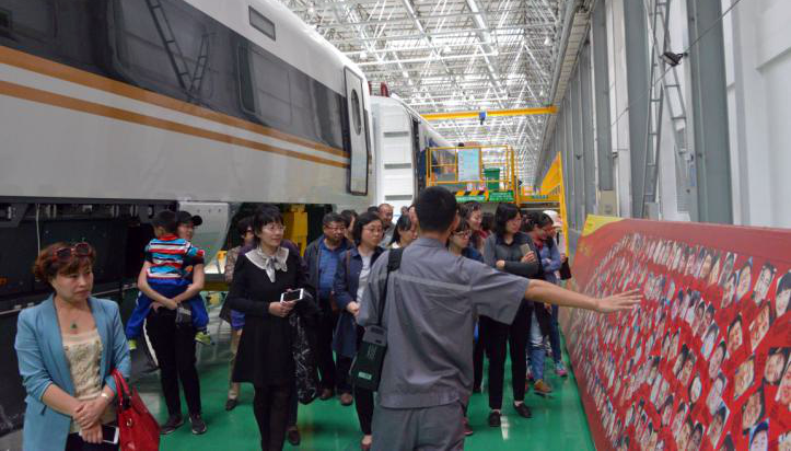 教师们在中心工作人员的引导下,沿着习近平总书记走过的路线,了解到了动车组的工艺流程、安全性能、以及员工的敬业精神。期间,来自中心各车间的“星级员工”们用自己的方式,表达他们对践行荣辱观,传承“工匠”文化的理解,着重介绍了车间特色党建品牌“万万千”活动。中国中车优秀共产党员罗昭强大师全程陪同参观,并为老师们做了题为《国家级技能大师工作室劳动模范创新工作室简介》的主题报告。罗昭强特别指出,中国标准动车组使用的世界最先进的列车网络控制系统,是长客完全自主研发制造的,是名副其实的“中国心”。