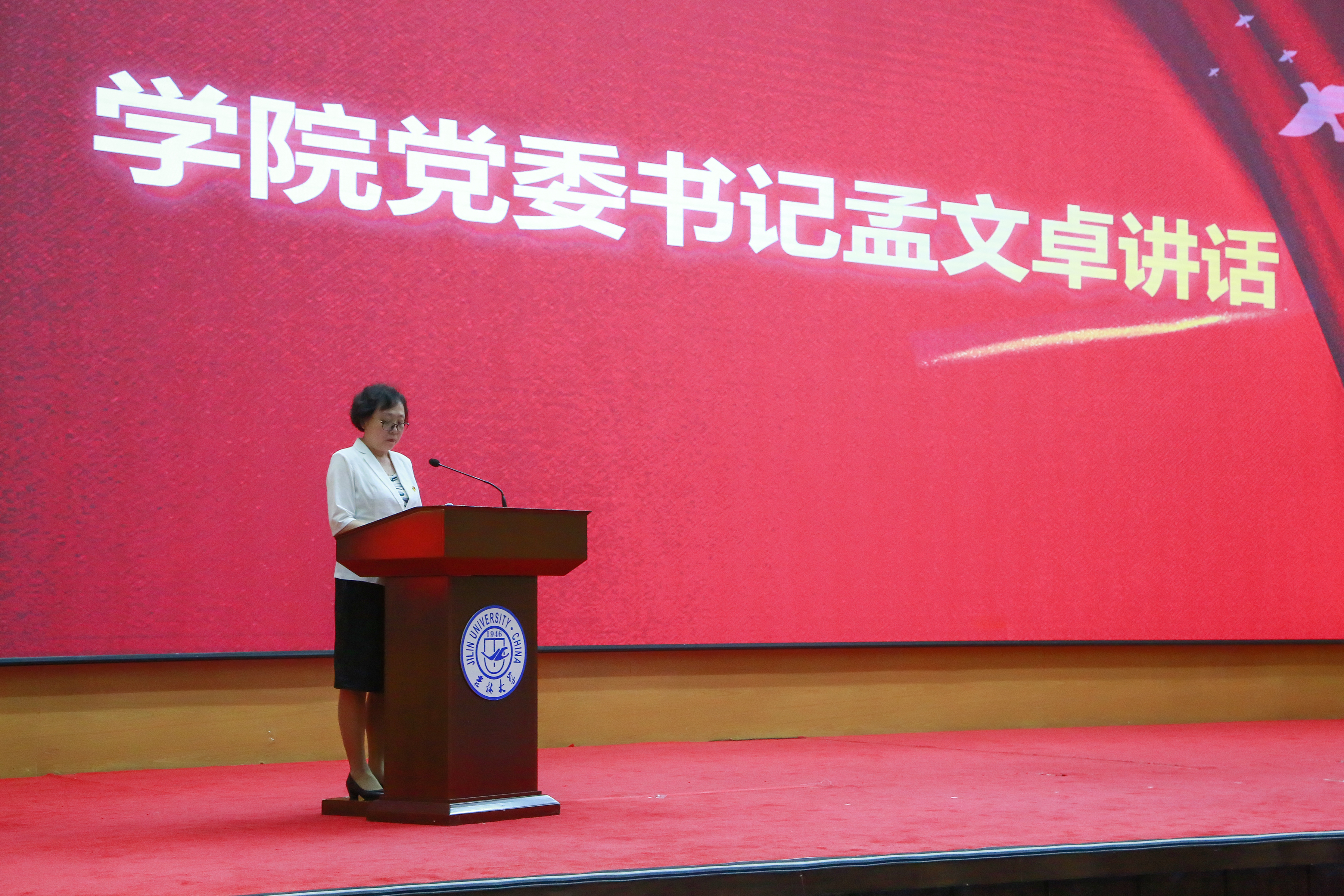 孟文卓作总结讲话,对学院广大党员致以真诚的节日问候。她指出,中国共产党的百年历史,是为中华民族的独立、解放、繁荣,为中国人民的自由、民主、幸福而不懈追求的奋斗史;是把马克思主义基本原理同中国具体实际相结合、不断推进马克思主义中国化的求索史;是我们党经受各种风浪考验、不断攀登各项事业新高度的创业史;更是伟大祖国告别屈辱落后、朝着伟大复兴顽强跋涉的发展史。面对伟大的时代召唤,我们要善于从历史中汲取营养,凝聚引领发展的不竭动力。每一名党员在学习历史中牢记责任,在展望未来中奋力前行,进一步坚定信念、改革创新、真抓实干,主动服务一流学科建设大局,以最坚定、最自觉、最实在的行动向党的生日献礼。最后,她对全院党员提出了三点希望,一是以对党忠诚为基,坚定理想信念追求。二是要以务实为民为根,争当党员先锋模范。三是以立德树人为本,永担时代发展重任。