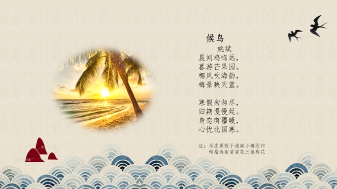 本次活动共收到投稿作品15篇,涵盖古诗、现代诗、英文诗等多种诗歌形式。一首《秋意》为我们带来秋日的温情,秋阳灿烂,秋意绵绵;一首《不必》道出“不必为自己不是别人而烦恼”的人生格局和真谛;亦有“寒假匆匆尽,归期慢慢延。身恋南疆暖,心忧北国寒。”描绘疫情期间的所行所见所闻所感;英文小诗《Physics》更是妙语连珠,表达出对物理学科的真实感悟;《凤求凰》、《一剪梅》、《钗头凤》三首词作品更是让人享受古风韵律在袅袅吟唱等等。