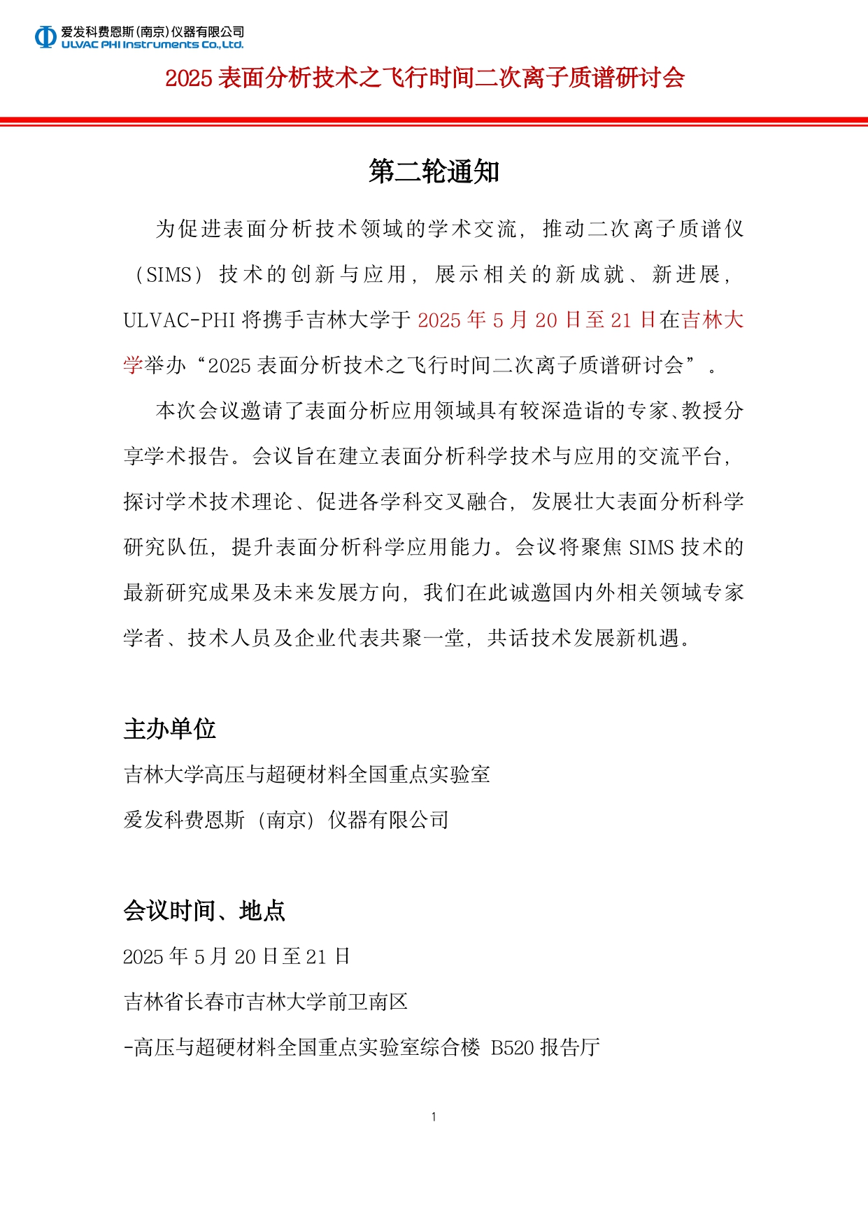 2025表面分析技术之飞行时间二次离子质谱研讨会