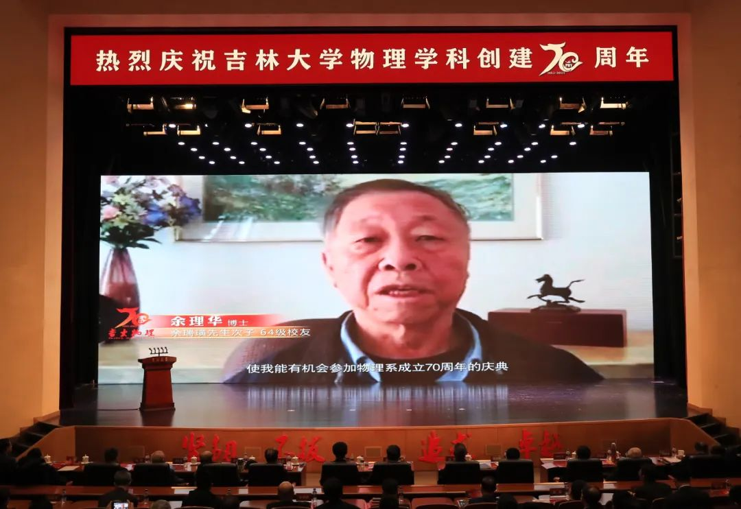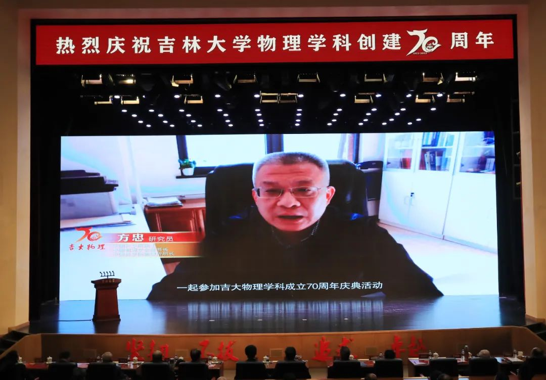 迟力峰、孙昌璞、孙殿义在代表海内外校友发言时,用校友们创作的“诗歌”表达对母校最深沉的热爱和祝福。他们深情回忆了在吉大求学的难忘瞬间和与恩师相处的点点滴滴,他们表示,七十岁,对立志于世界一流学科的吉大物理,恰是风华正茂。今后将不遗余力为母校的建设和发展添砖加瓦,助力母校培养高水平人才、产出高水平成果,为母校的事业贡献力量。