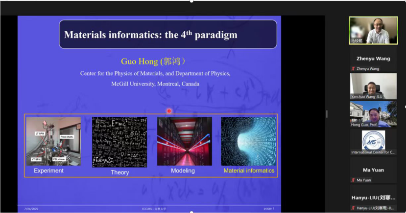 、未来科学国际合作联合实验室、超硬材料国家重点实验室、计算方法与软件国际中心等部门、单位和机构负责人参加讲座,校内外有2400余名师生在线收看。