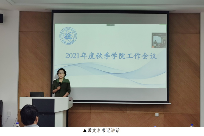 在物理楼333召开2021年度秋季工作会议,学院全体教职员工近200人参加了会议。会议由学院党委书记孟文卓主持。