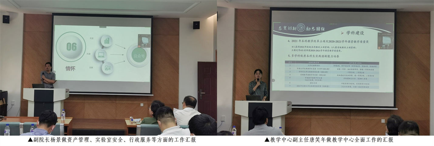 学院领导班子成员围绕“双一流”建设的主要任务,分别就2021年上半年所分管工作的进展情况、存在问题、遇到的困难以及下一步工作思路和举措进行了汇报。