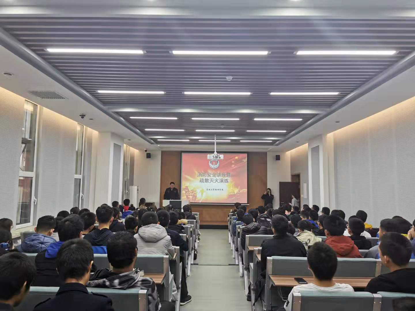 为更好的增强师生安全意识,加强有效应对紧急突发事件的能力,学院于2019年11月5日下午,在物理楼会议室及楼下停车场分别开展消防安全知识讲座及疏散消防演练活动。