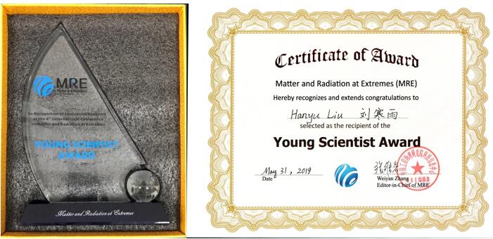 2019年5月31日,第四届国际极端条件下的物质与辐射学术会议(ICMRE)将“MRE青年科学家奖”(MRE Young Scientist Award)授予漫蛙