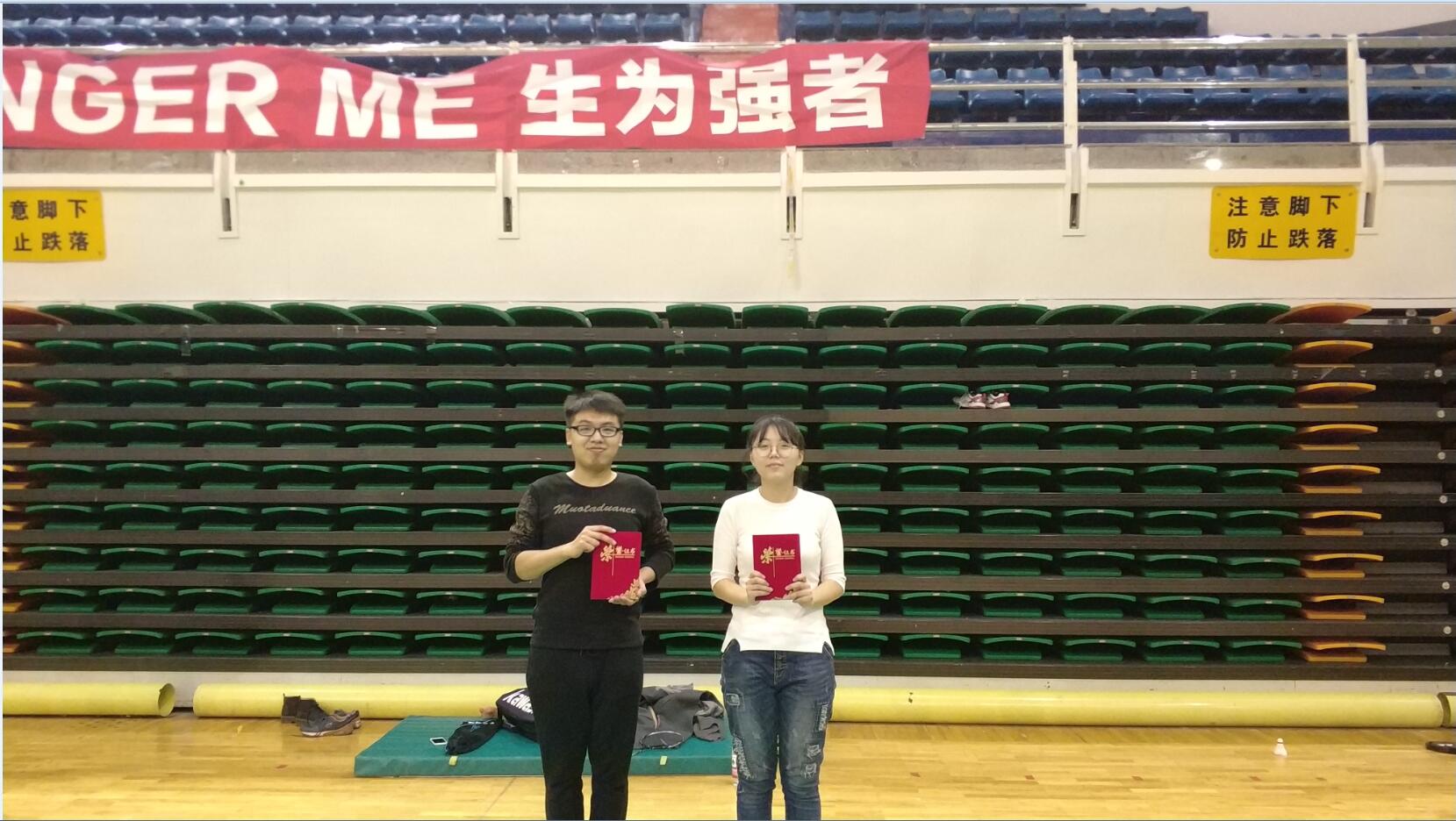 经过激烈角逐,王豫科、徐浩同学分别夺得女单第一名、男单第一名;马子程、李宝举同学夺得男子双打比赛冠军;顾芗、屠宏宇同学夺得女子双打比赛冠军;孟帅、王莹同学夺得男女混合双打比赛冠军。比赛间隙,唐宗明老师与参赛同学进行了一场精彩纷呈的友谊赛,彰显了我院师其乐融融,亦师亦友的良好风貌。
