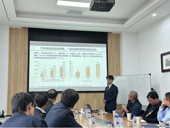 与一汽集团之间坚实的合作基础。王彦超表达了未来双方在镁铝合金等领域开展长期合作的期望。胡金豹详细介绍了一汽集团在高性能合金构件研发方面的最新进展,并对一体化压铸铝合金技术的发展需求进行了深入阐述。李泓霖博士代表CALYPSO研发团队,介绍了CALYPSO研发团队在结构预测领域的研究成果,以及CALYPSO软件在铸造行业中的广泛应用前景。