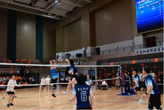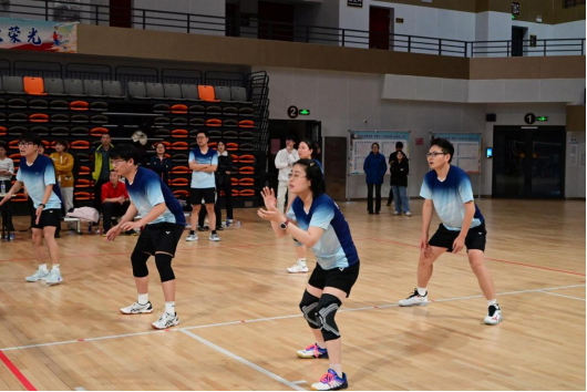 高度重视,精心筹备。组建了由教师代表、研究生及辅导员共12人组成的参赛队伍。学院党委书记、主管研究生工作副书记亲自动员,鼓励师生以赛促练、以赛强体,将科研中的严谨态度融入体育竞技。队员们利用课余时间积极训练,从发球精准度、接传配合到战术推演,每一个环节都反复打磨。周洪雷、马玉刚、宋乾等教师带头参训,与辅导员和学生队员共同锻炼,在训练中践行“师生同频、教学相长”的理念,为赛事打好技术与默契的双重基础,也为学生队员们日常缓解科研压力、强健体魄提供平台。