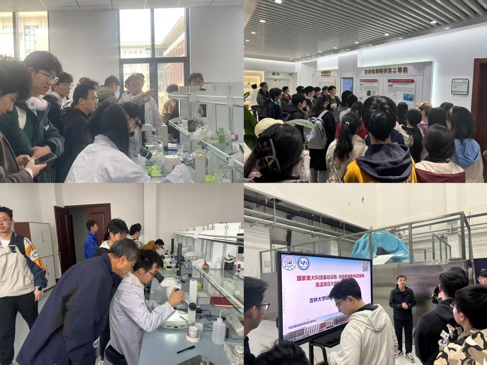 最后,参与者参观了高压材料合成实验室和"综合极端条件实验装置"。李鑫副教授详细介绍了装置的技术参数、运行原理及其在材料科学、地球深部物质研究等领域的应用成果。
