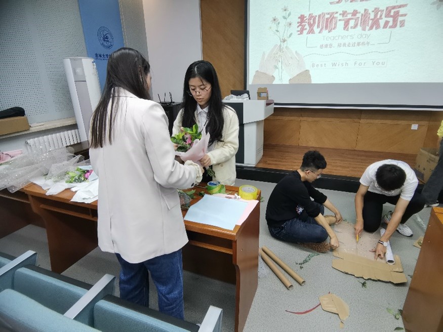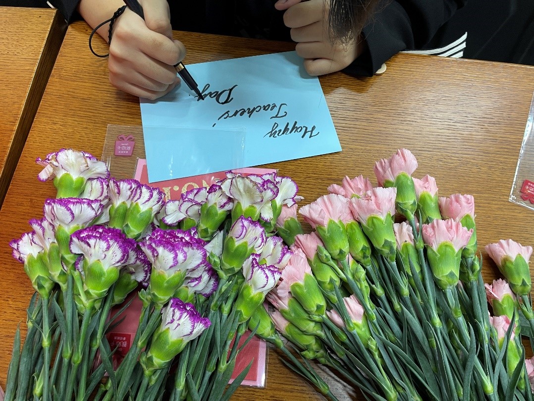 的各位老师们准备着节日的礼物,一封封同学们手写的祝福,流露着学子们的真情实感;一捧捧亲手挑选的花束,散发着对老师们满满的爱意。