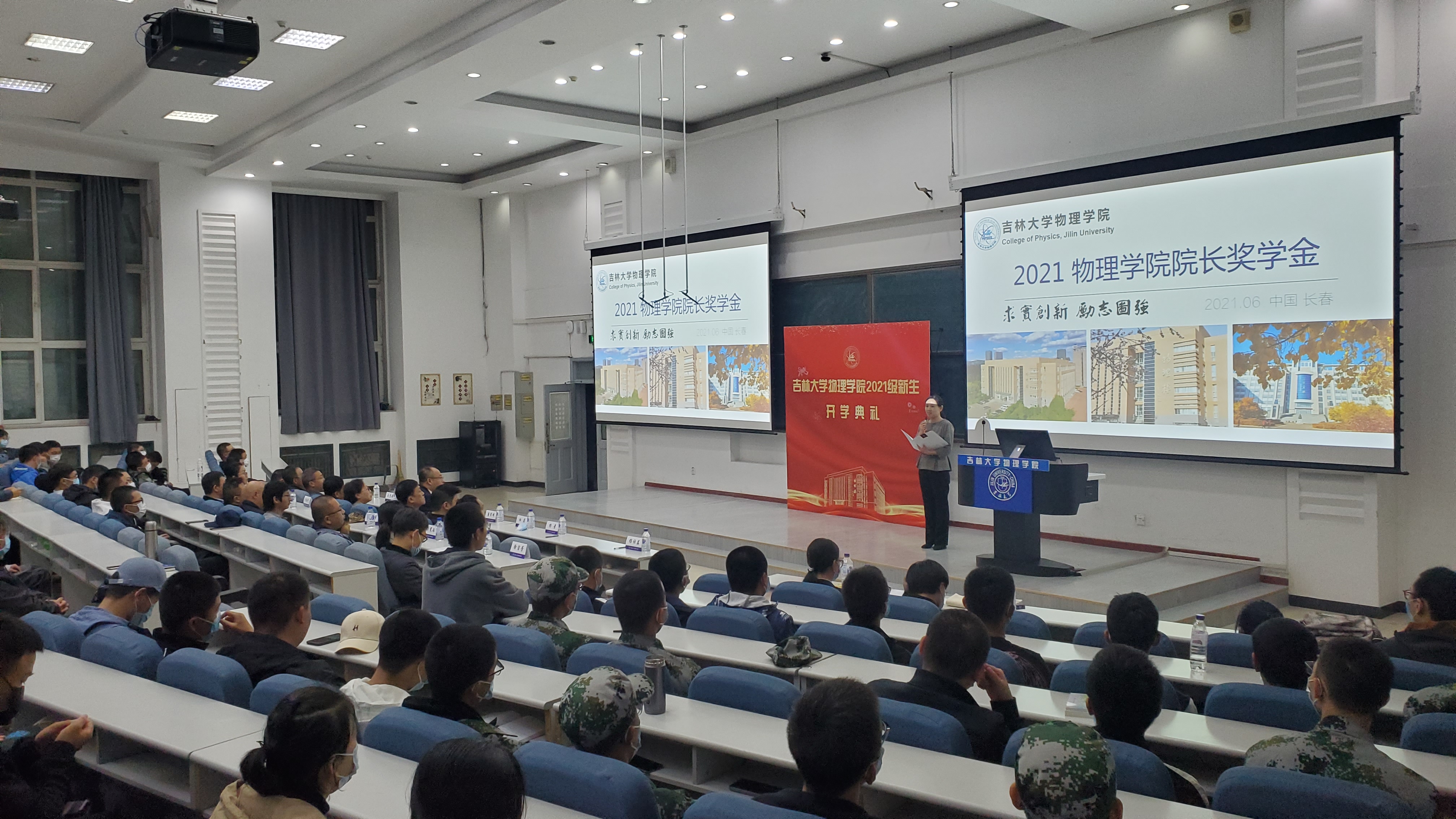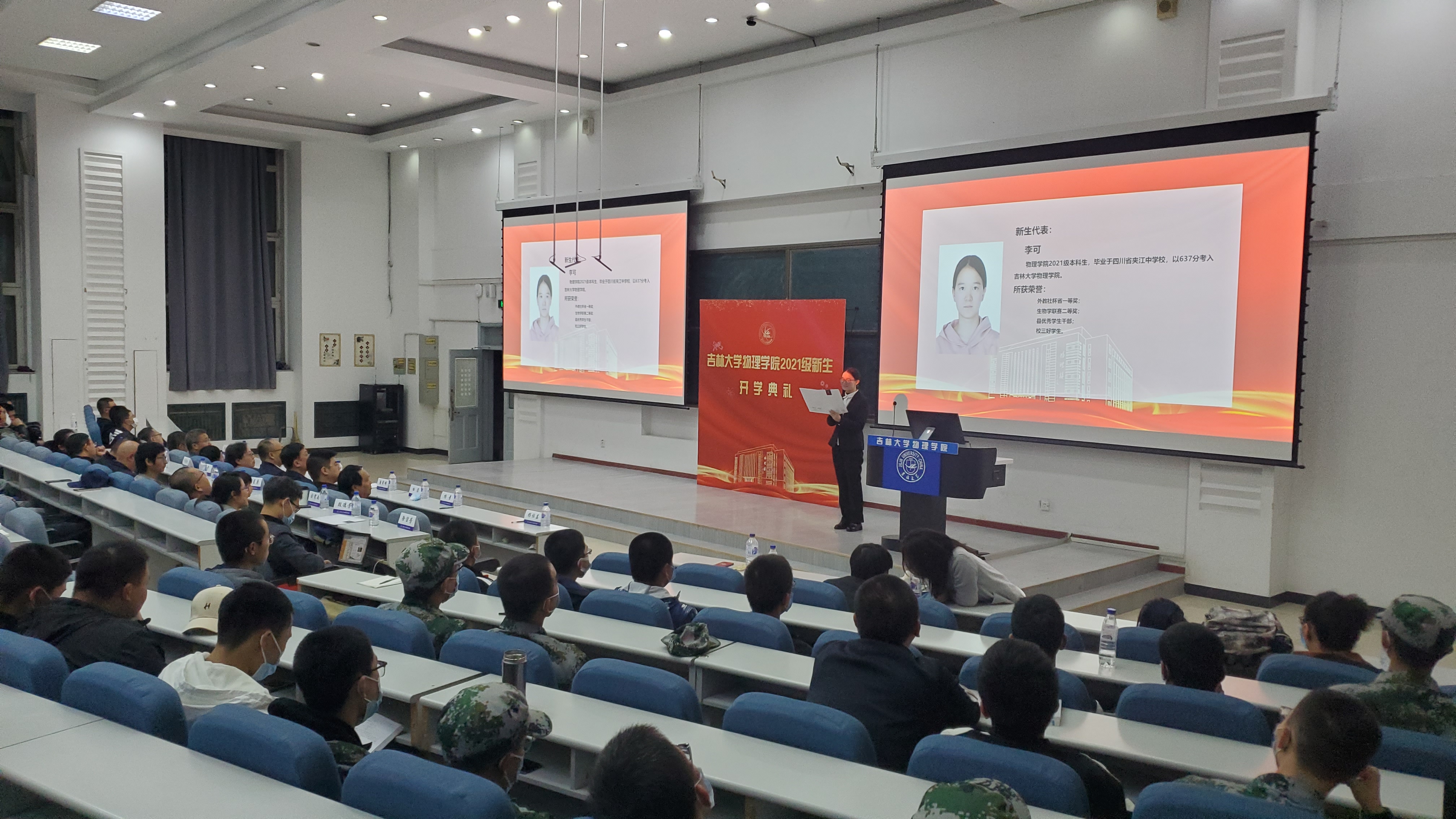 紧接着,学生代表发言。2021级李可同学作为新生代表,以昂扬的精神面貌,展现了 2021级新生不惧困难,怀着对物理的信仰,对未知的渴望,肩负着师长的嘱托,民族的希望,努力奋斗的精神品质。2020院长奖学金获得者之一的廖一朴同学作为老生代表向新同学们分享了自己在漫蛙