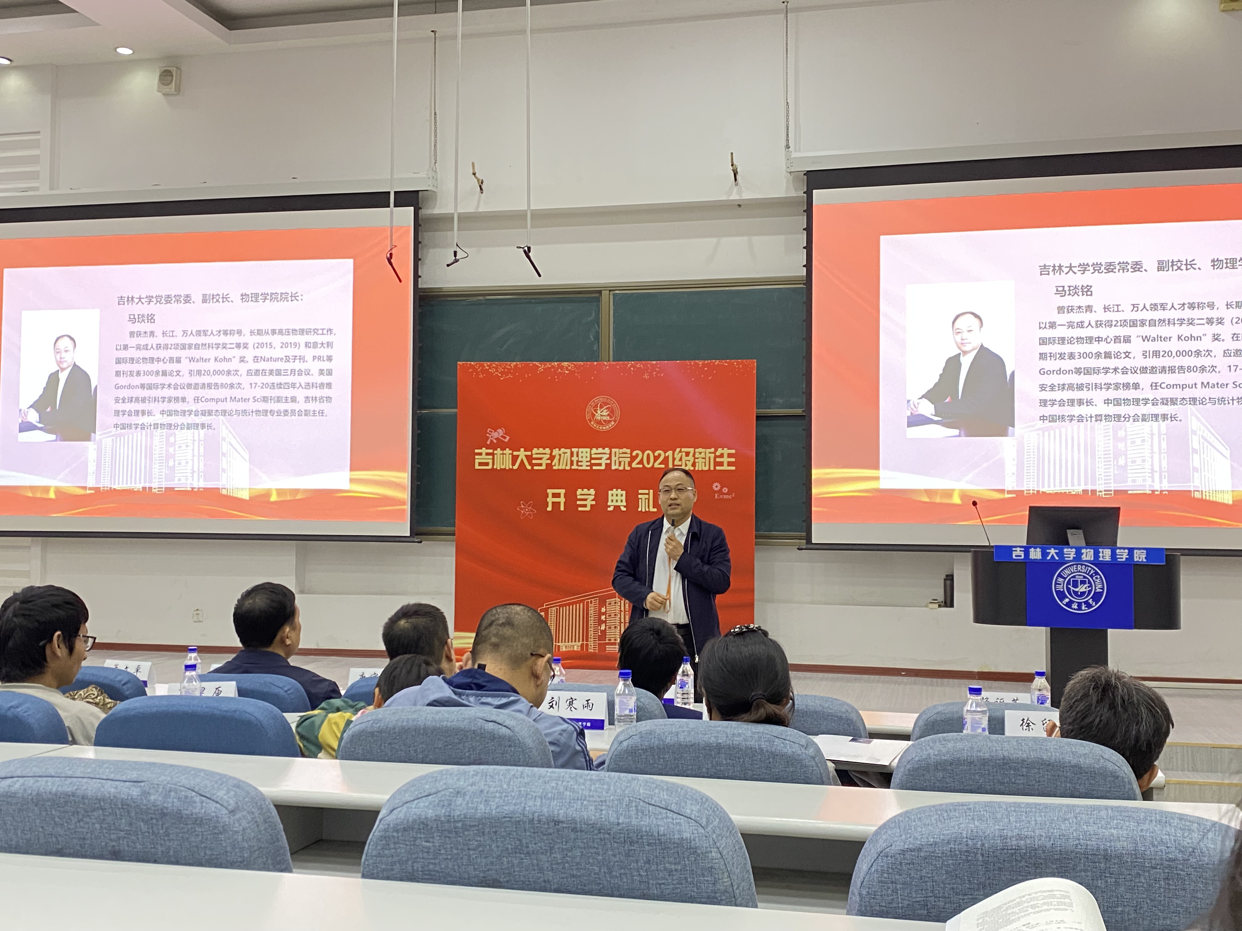 始建于1952年,由余瑞璜、朱光亚、吴式枢、勾清泉、霍秉权、郑建宣、高墀恩、黄振邦、解俊民等一批物理学界泰斗以满腔的爱国之情,放弃原有的优越生活、工作条件,奔赴长春而创建,是一个有历史、有底蕴、有传承的学院,更形成了自己的文化与精神,即坚韧不拔,追求卓越。每个物理人都应该秉持这种精神,终身学习,不断进步。马琰铭院长由衷地表示,大学阶段其实是人生的分水岭,只有全力以赴的努力,珍惜每一次学习的机会,利用好各种平台和资源,提升自己的能力,才能避免被淘汰,在以后的事业中力争上游。各位新同学作为“双一流”学科学生,应该把复兴中华民族作为自己的责任,贯彻习近平主席的讲话精神,将自身的发展和国家前途命运联系在一起,尽自己一份力量推动祖国科学技术发展,这样才能让自身发展达到新的境界。