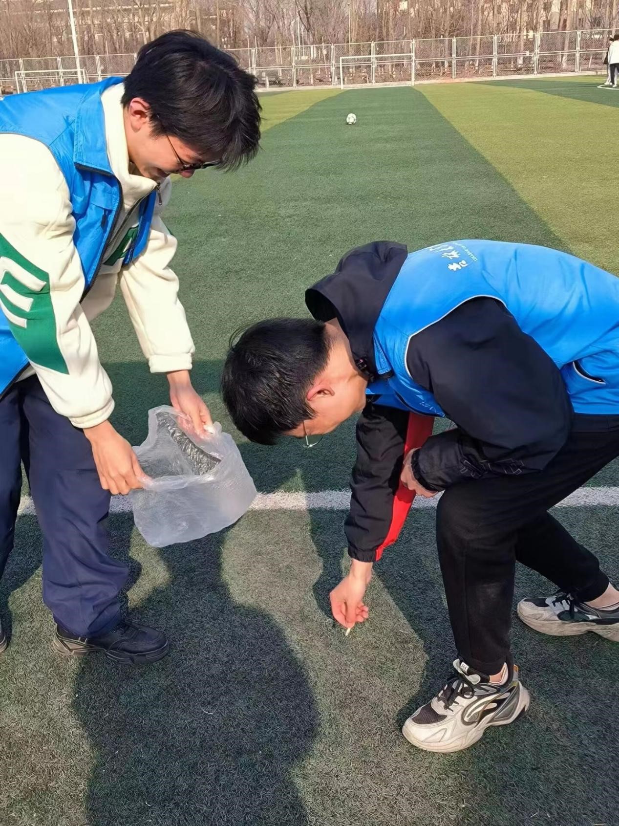 在捡垃圾的活动中,同学们沿着街道,清理着路边的垃圾,为城市环境的整洁和美观贡献了一份力量。