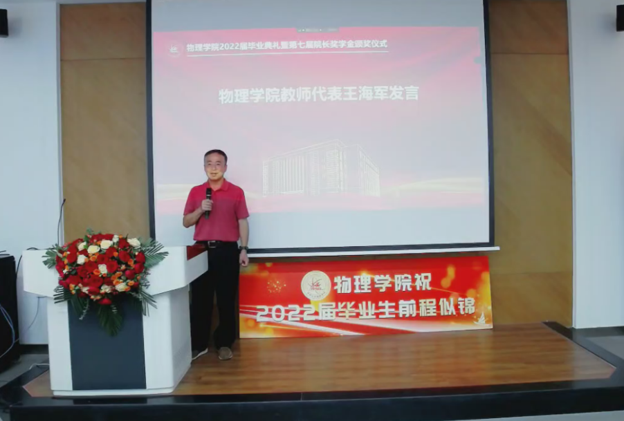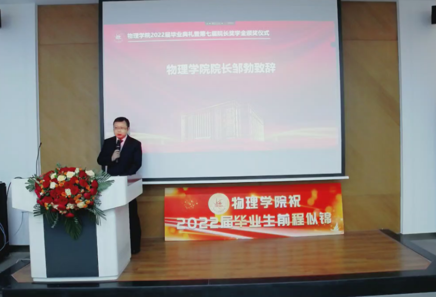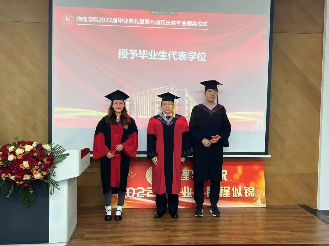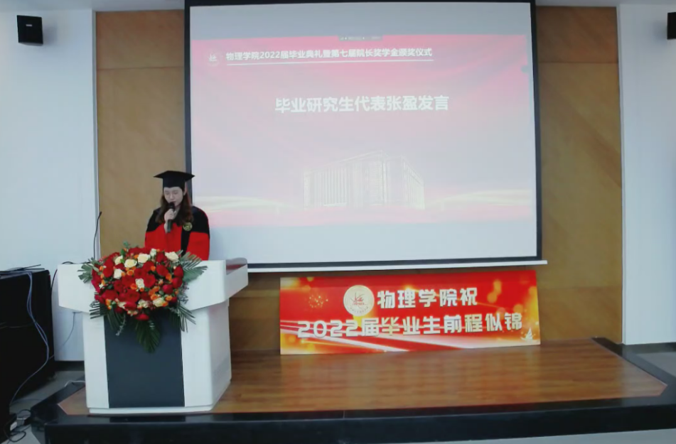 副院长杨景于物理楼参加典礼,各系主任、教师代表及全体毕业生于云端参加典礼。典礼由学院党委副书记兼副院长杨讴菡主持。