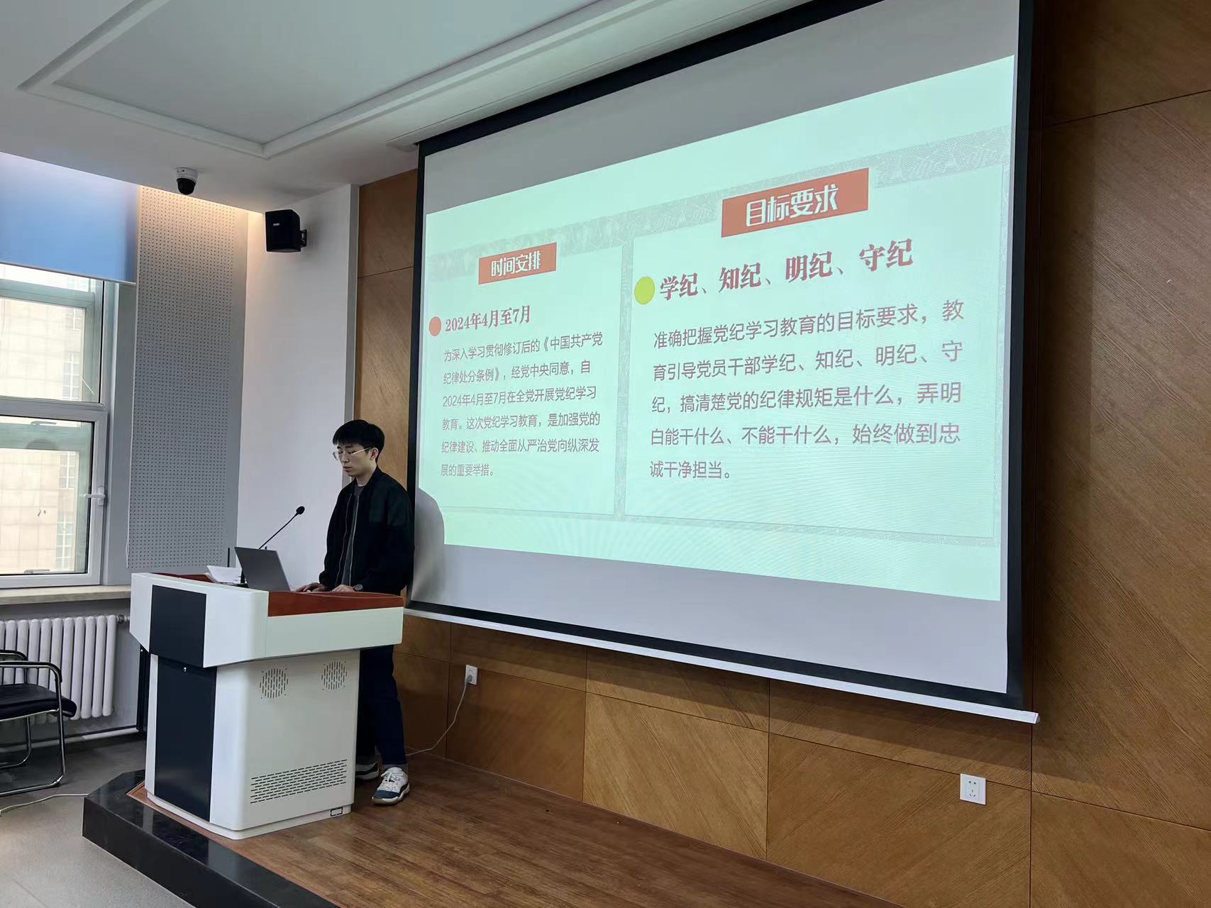 本科学生第一、第二党支部召开党纪学习教育启动部署会议。本次会议由本科学生第一党支部书记车禹剑、本科生学生第二党支部书记刘扬主持,全体本科学生党员参加。