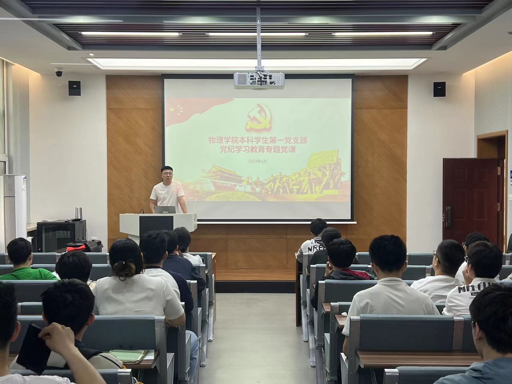 本科学生第一、第二党支部在物理楼333召开党纪学习教育专题党课。漫蛙