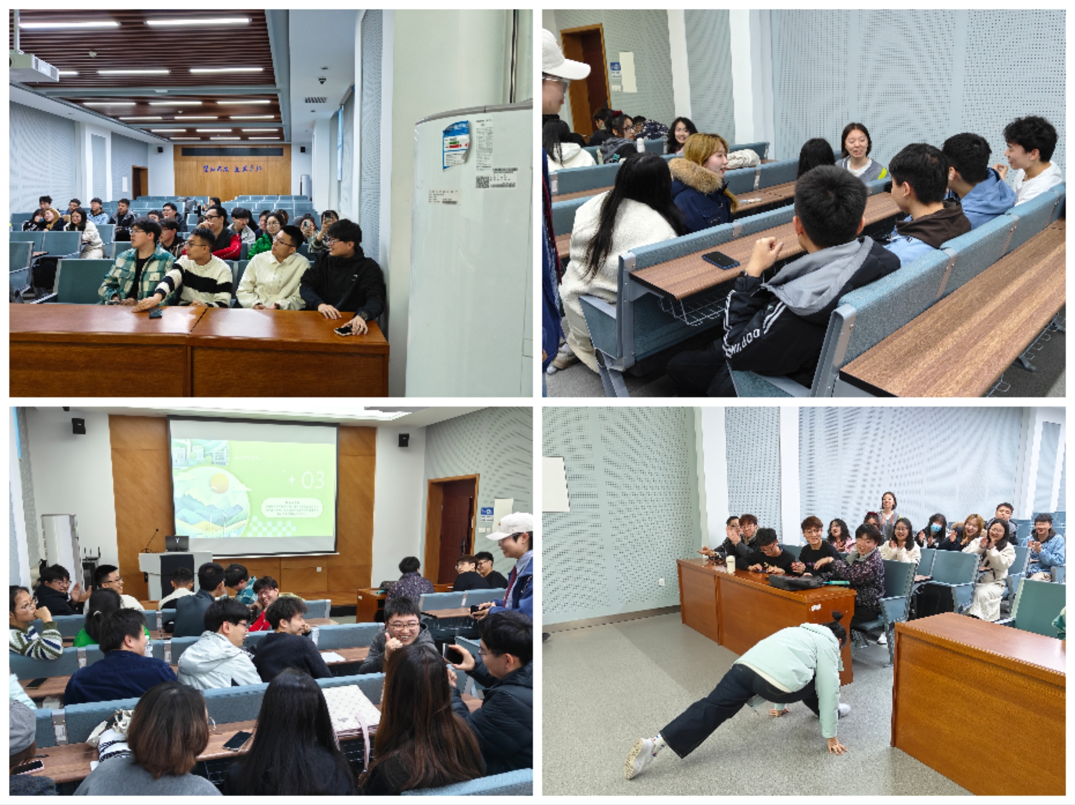 活动以“沉浸式情绪体验”为主线,设计了四个层层递进的环节。开场别出心裁,设置了轻冥想环节让同学们的身心深度放松。在“很高兴认识你”自我介绍环节,摒弃了传统的单调模式,采用小组接龙叠加式玩法使得现场气氛即紧张又欢乐。优点轰炸环节将活动推向温情高潮。同学们围坐在一起,彼此真诚夸赞:“你笑起来像小太阳,特别治愈”“你讲解难题时思路超清晰,每次都能让我茅塞顿开”等温暖话语不绝于耳。在这一声声夸赞中,不少同学眼眶泛红,意外发现了自己身上那些未曾察觉的闪光点,自信心也随之增强。最后的互动环节同样精彩。“我能理解你”考验小组默契,加深了同学们对彼此思维模式与处事风格的理解。“我有你没有”环节则充满惊喜,大家纷纷展示独特技能,有人现场表演“劈叉”特技,引得全场尖叫,将活动气氛推向顶点。