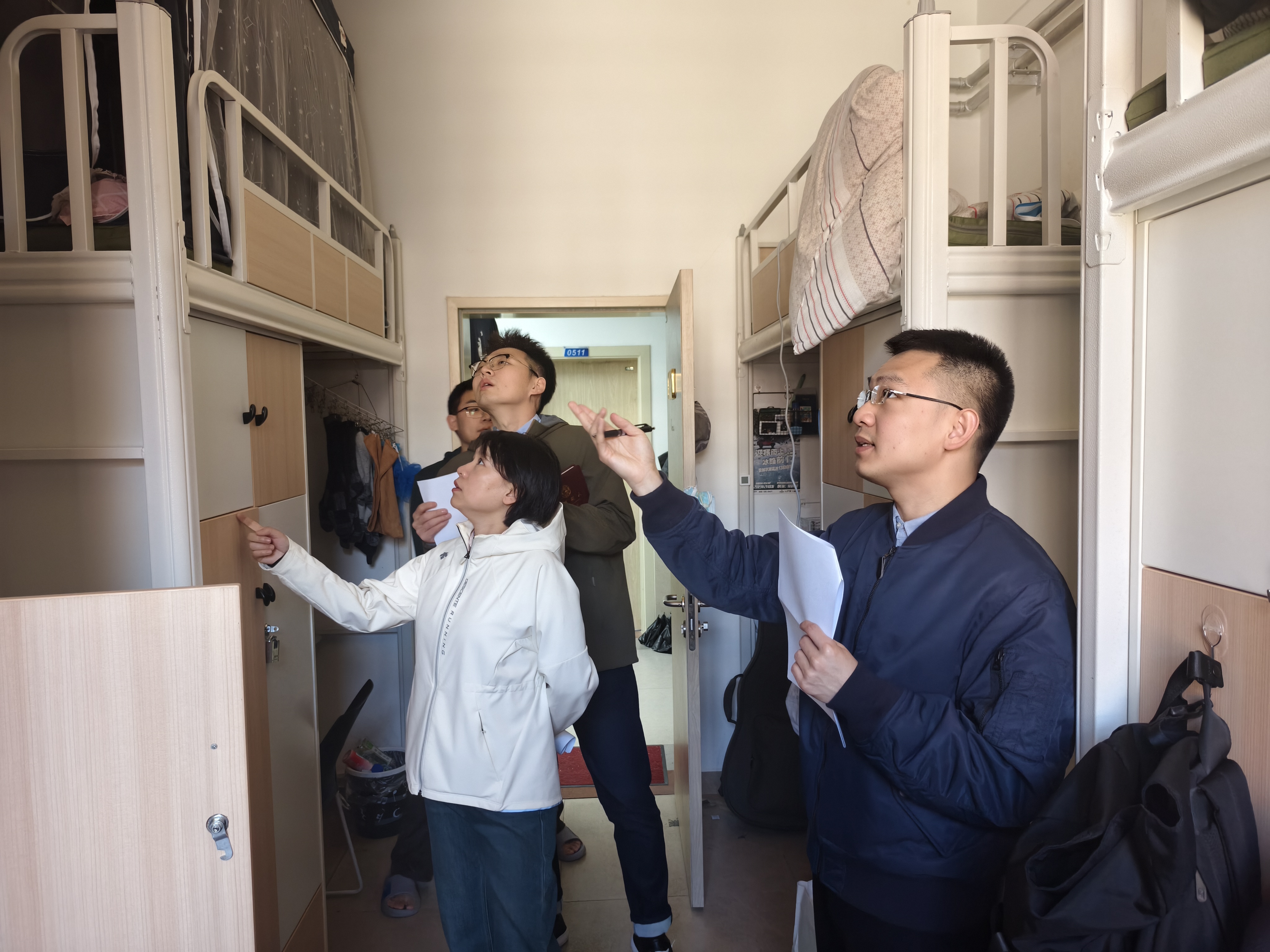走进学生宿舍,杨讴菡老师以拉家常的方式,与同学们亲切交谈,细致询问宿舍通风采光、设施配备等居住细节,关切生活饮食、作息安排等日常点滴。交流中,她深入了解研究生们的科研实验进度,倾听大家对未来就业方向的规划与困惑。她还鼓励同学们以学院杰出前辈为榜样,在科研道路上保持专注、勇于创新、追求卓越,让宿舍不仅成为休憩之所,更化作攻克学术难题的第二战场。