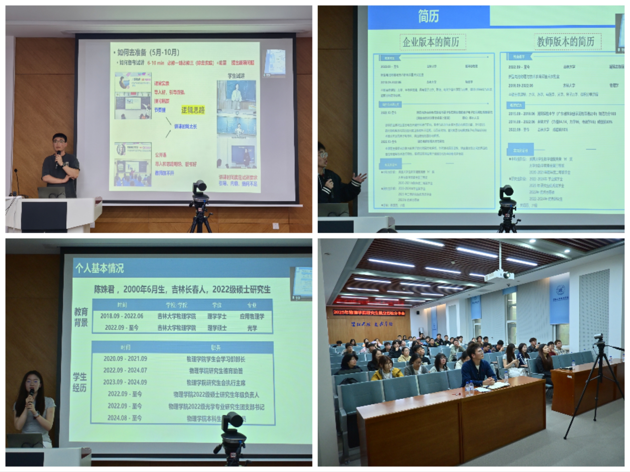 研究生就业经验分享会在物理楼333会议室举行,活动聚焦初高中物理教师、企业、公务员、军队文职四类就业岗位,特邀7名应届毕业生代表进行经验分享,吸引了150余名研究生通过线下、线上方式参与。