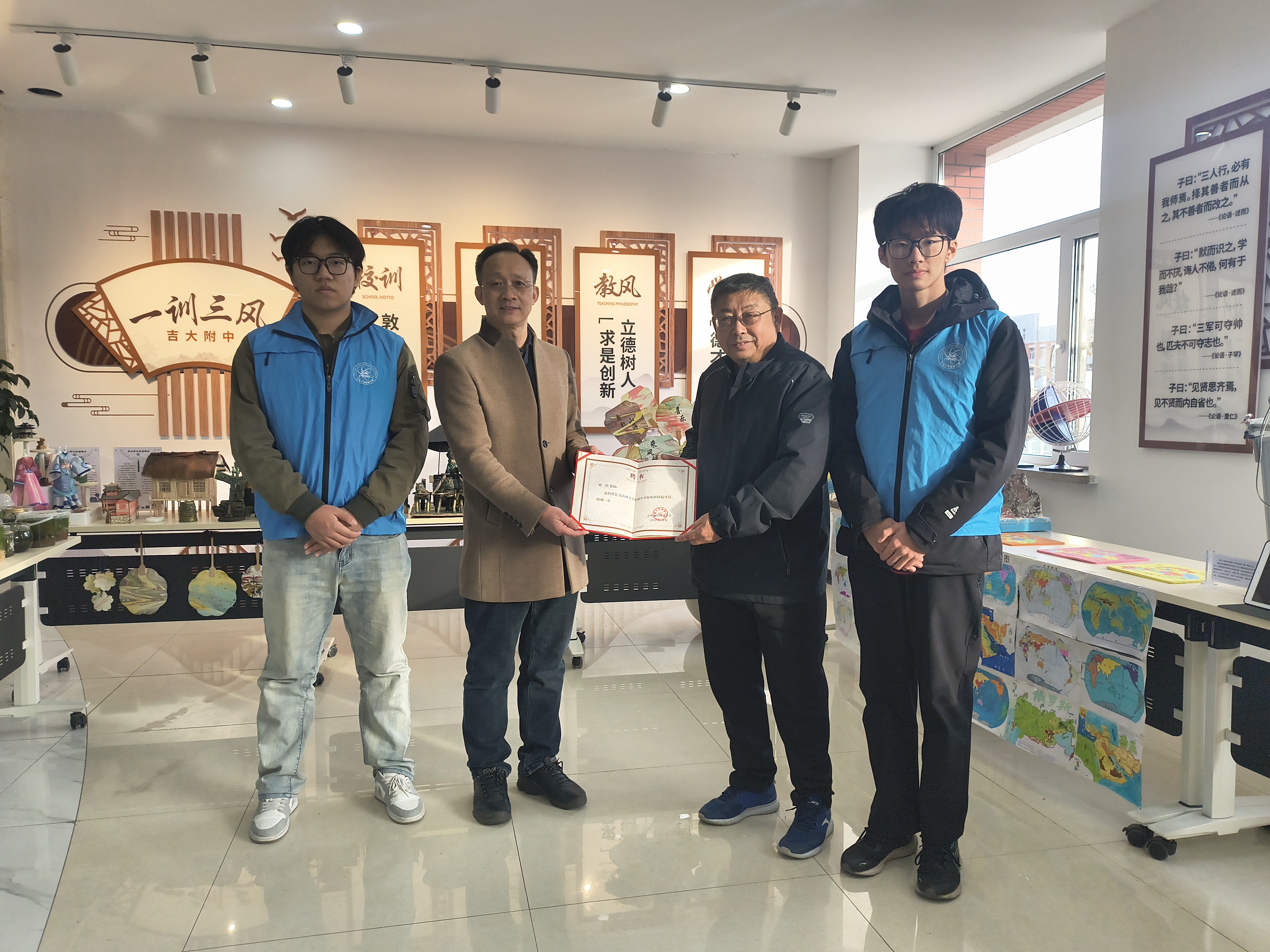 附属中学副校长黄兴武为梁浩老师颁发聘书。此次合作搭建了校内外科技教育资源互通的桥梁,为中学生提供更广阔的科技创新实践平台,同时为高校学生参与社会实践、提升综合能力创造优质契机,助力青少年科学素养与创新能力的全面提升。