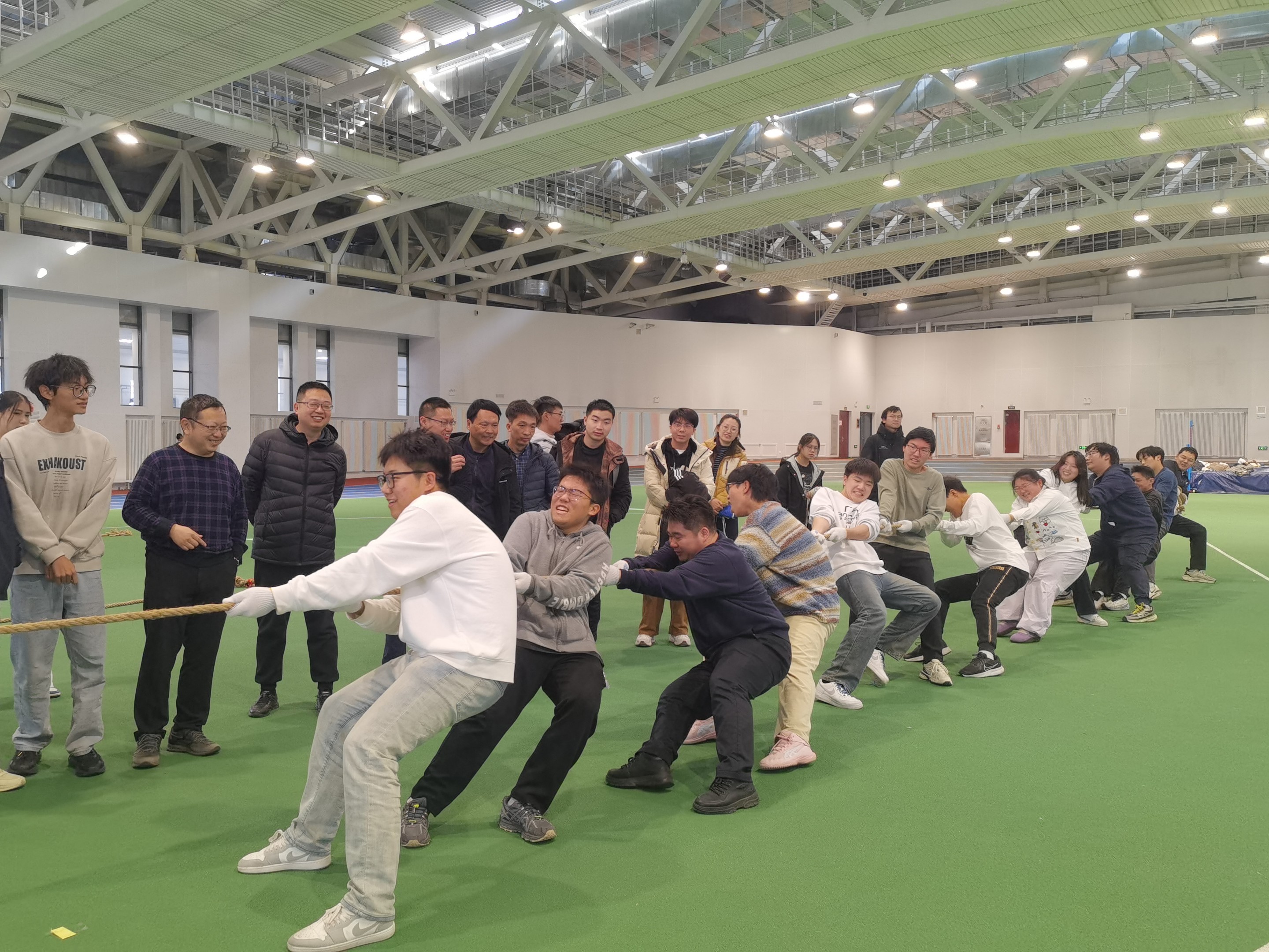 一根绳索,牵系的是凝心聚力的团队精神;一次比拼,展现的是物理学子奋勇拼搏的青春风采。本次拔河比赛不仅进一步增强了班级凝聚力,也深化了师生之间的情感交流。相信在未来的学习生活中,同学们也能延续今天赛场上为集体而战的热血与荣光,带着这份积极向上的劲头和拼搏协作的精神面对每一次挑战。